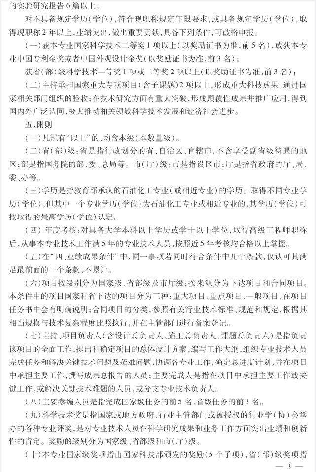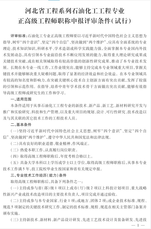 河北省工程系列石油化工工程专业